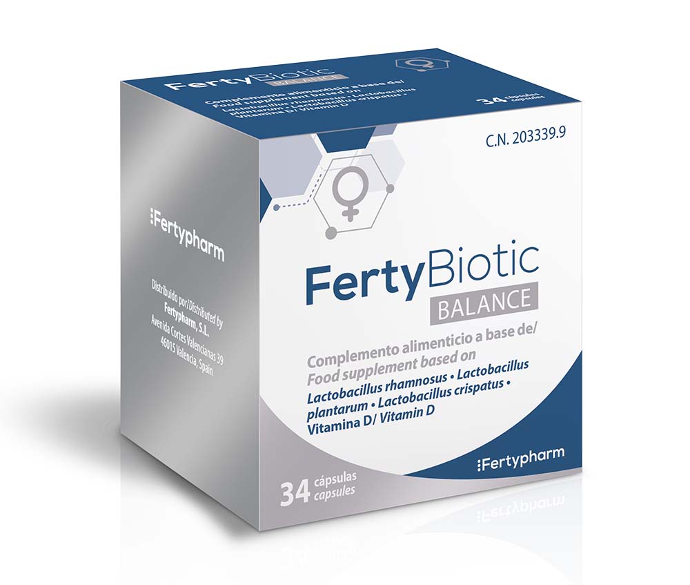 FertyBiotic Balance conține trei tipuri de probiotice: Lactobacillus rhamnosus, Lactobacillus plantarum și Lactobacillus crispatus, plus vitamina D.